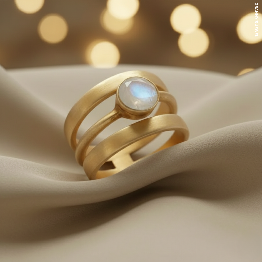 VINTAGE GOLD INLAID MOONSTONE RING